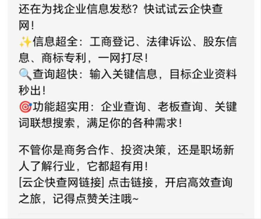 [云企快查网链接]点击链接,开启高效查询之旅,记得点赞关注哦~